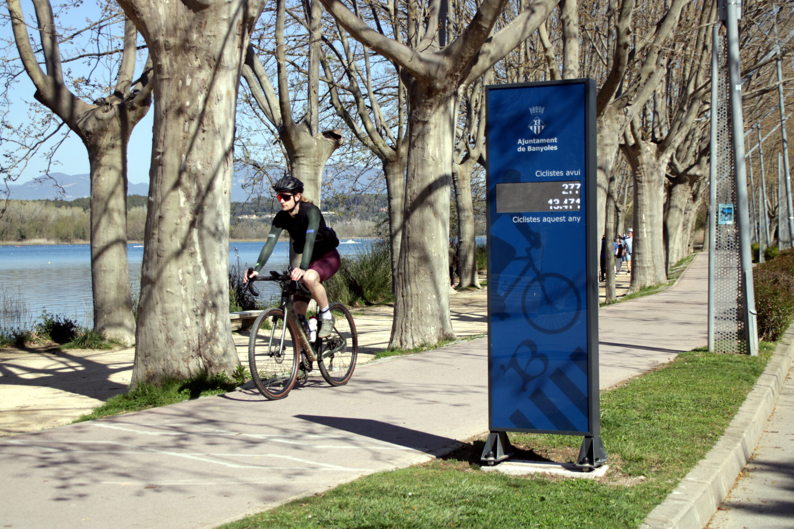 ACN Banyoles – L’Ajuntament de Banyoles ha instal·lat un comptador de bicicletes a l’encreuament entre el passeig Josep Maria Vidal i el carrer de la Barca, davant de l’Estany. L’acció, finançada amb fons Next Generation, té l’objectiu de monitorar l’ús diari de la bicicleta i, alhora, fomentar aquest mitjà de transport sostenible a la ciutat. “Hem detectat que entre setmana s’utilitza molt més que el cap de setmana. Això és positiu perquè vol dir que no en fem un ús espontani”, ha destacat el regidor Albert Tubert. En el marc del mateix projecte, també s’ha habilitat un punt d’autoreparació al barri de Can Puig, per on passa la Via Verda que connecta Banyoles i Girona, així com un panell informatiu i una taula de pícnic.