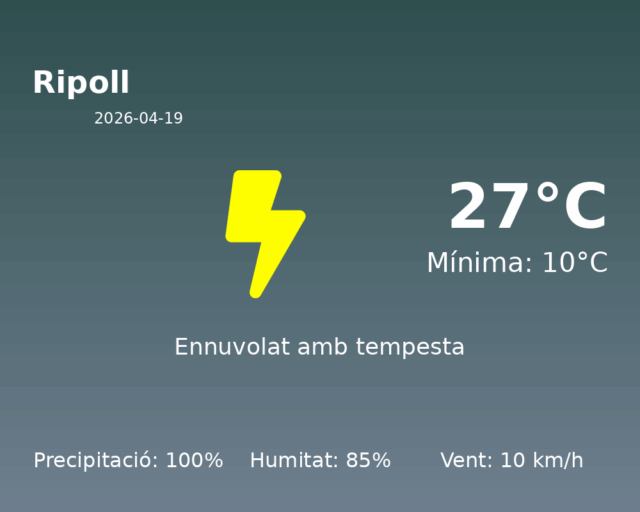 En definitiva, aquest 19 d’abril, a Ripoll, cal esperar una jornada plujosa i humida amb temperatures càlides. És important estar preparat per a les condicions