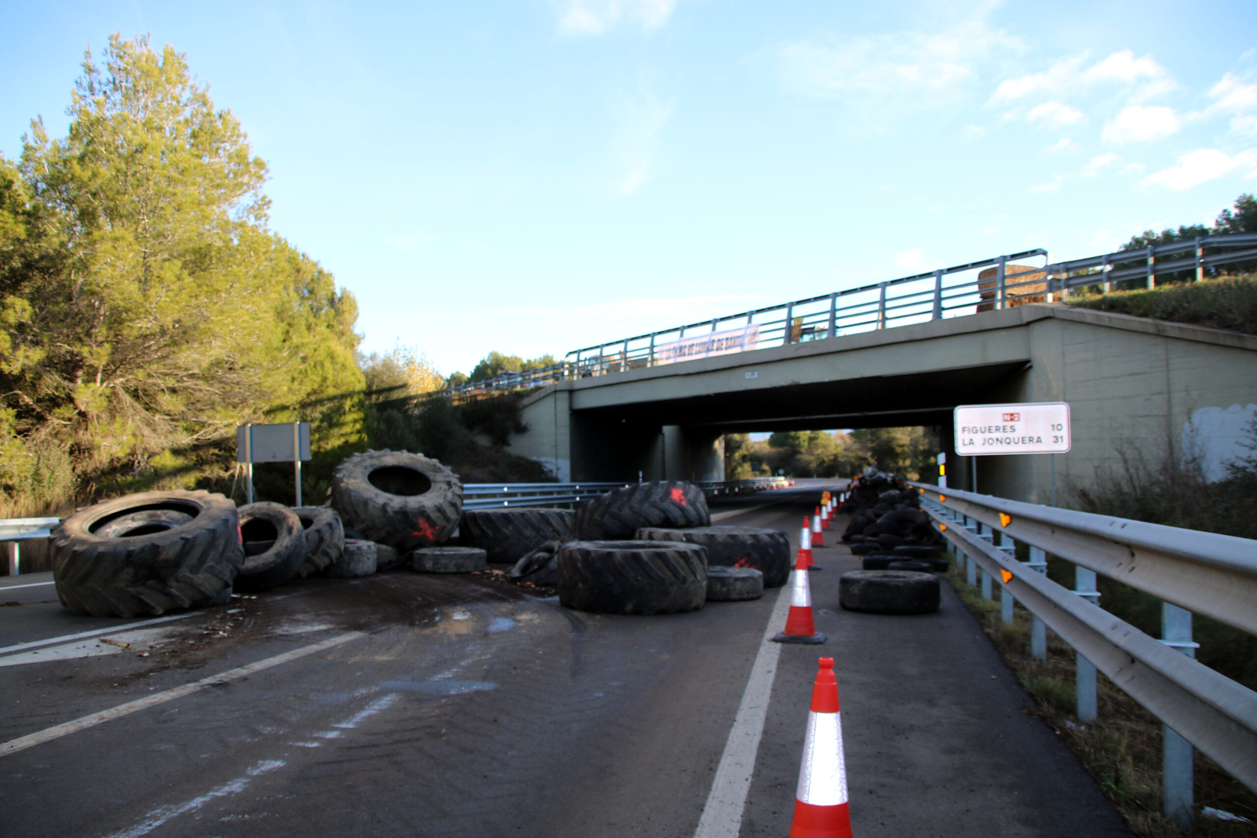 La protesta a Pontós (Alt Empordà) va començar la matinada de dimecres a dijous. Els pagesos van tallar l’AP-7, una de les principals vies de connexió amb França i per on cada dia passen milers de camions. En un primer moment, van mantenir oberta l’N-II pels cotxes, tot i que no deixaven passar els camions, fins aquest matí, que també han bloquejat aquesta via.