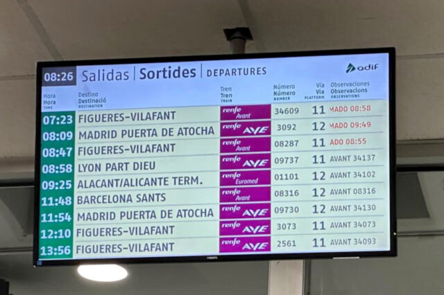 ACN Girona – Indignació i desconcert a l’estació de Girona perquè no se sap quan surten els trens. Molts usuaris s’han trobat que els viatges previstos als serveis mínims no s’ha complert. L’AVE previst a les 8:09 ha anat amb una hora de retard i el personal no podia garantir que acabés sortint. A la mateixa hora havia d’arribar un Rodalies de Portbou (Alt Empordà), però finalment ha sortit des de les vies gironines, sense fer el recorregut des de l’Alt Empordà. Un dels passatgers, en Francisco Barranco, volia agafar l’alta velocitat, però al final ha desistit: “Hi ha una hora de retard, però tampoc ens confirmen si sortirà. Ningú sap informar-te, l’aplicació no funciona i no sabem ni quan arribarem ni si arribarem. Som un país de pandereta”.