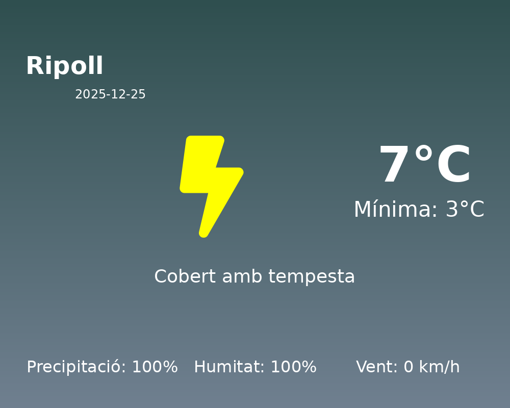 En resum, el Nadal a Ripoll serà gris, humit i fresc. Tot i les condicions meteorològiques adverses, us desitgem un molt bon Nadal i us animem a gaudir de l’acollidora atmosfera de les vostres llars.